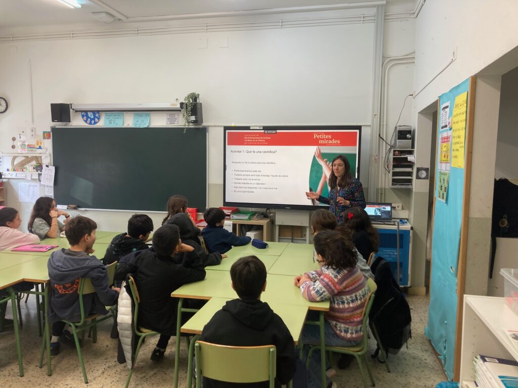 “Quan era petita volia ser com el Tintín, perquè viatjava, coneixia altres països i aprenia moltes coses. M’agradava llegir i mirar pel·lícules perquè és com viatjar des de casa. I ser científica també vol dir descobrir coses noves”. D’aquesta manera, l’Elisenda Ballesté, professora i investigadora en Microbiologia a la Universitat de Barcelona (UB), es presentava a l’alumnat de 5è de primària de l’escola pública Estel-Guinardó, al districte d’Horta-Guinardó dins el projecte ‘Petites Mirades, que vol celebrar el Dia Internacional de la Dona i la Nena en la Ciència, que se celebra l’11 de febrer, apropant la ciència a l’alumnat de primària amb l’experiència i el guiatge d’investigadores de la UB.