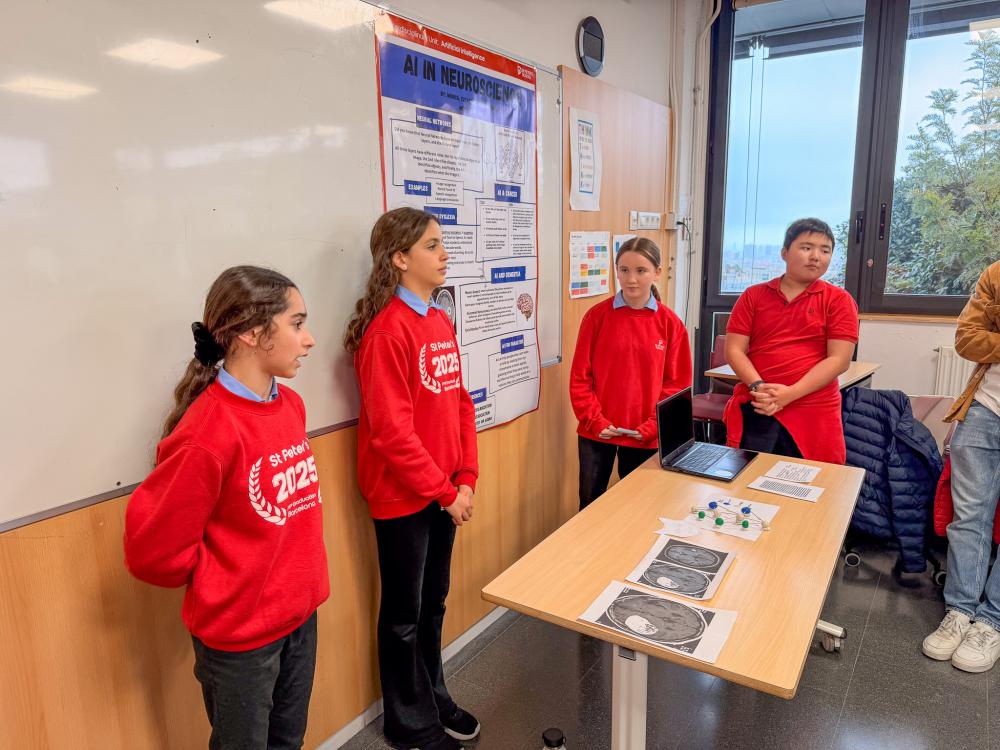 Durant la setmana, l’alumnat assisteix fins a les 15h de la tarda a diferents classes lectives on es parla de la IA des de diferents temàtiques. Se’ls explica què és la IA, quines eines existeixen, què és un prompt (ordre, pregunta o instruccions que es fa als programes o xatbots d’IA, com el ChatGPT o Gemini), com es poden millorar aquestes consultes (enginyeria ràpida), l’aprenentatge automàtic, supervisat o no supervisat… A la tarda, es divideixen en grups de 4 o 5 i acompanyats d’un mentor -un dels docents que han tingut al matí- treballen el projecte sobre alguna temàtica concreta que els interessi, per exemple, de l’àmbit de l’ètica, l’art, el llenguatge, la salut, la ciència o les matemàtiques, que hauran d’explicar l’últim dia davant les seves famílies. Durant aquests cinc dies d’investigació i consolidació del projecte, l’alumnat utilitza les eines de la IA generativa de text, imatge, àudio, vídeo i programació i aplica els continguts que han anat aprenent durant la setmana, sobretot pel que fa a l’ús ètic i responsable. De fet, Escorcia assegura que revisen la política de la IA perquè hi ha uns pilars “que són fonamentals”, com l’autenticitat, la seguretat o compliance (compliment de les lleis) i la transparència. En aquest sentit, des de St Peter’s han decidit utilitzar Google perquè està d’acord en el compliment de la normativa europea. Als infants també se’ls explica, per exemple, que no pugin dades personals en l’ús de la IA generativa i que siguin transparents explicant, per exemple, si han utilitzat la IA com a eina per fer alguna cosa en concret.